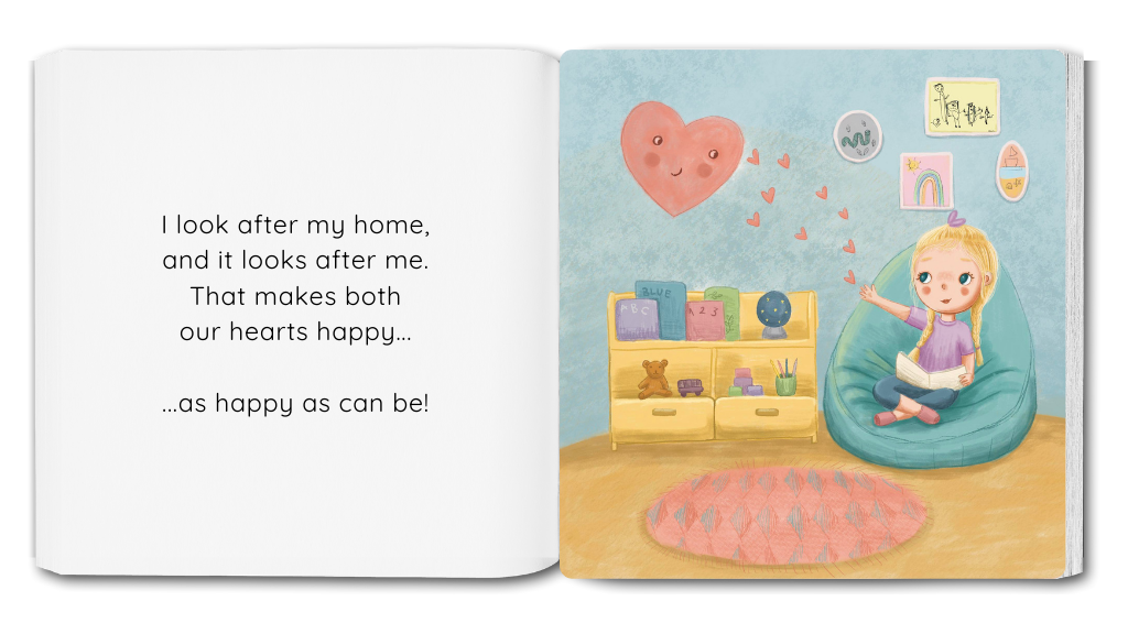 Written with children aged 3-7 years in mind, the story follows a little girl as she learns that there are things that make her home feel sad, worried and stressed. She will discover that she has the power to be responsible, respectful and kind, and this will make her home’s heart happy!