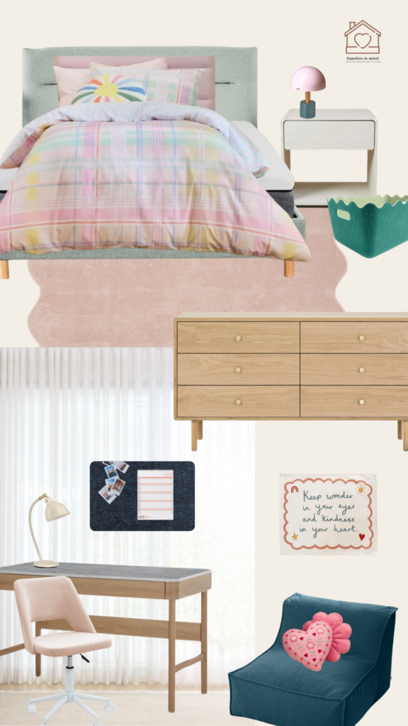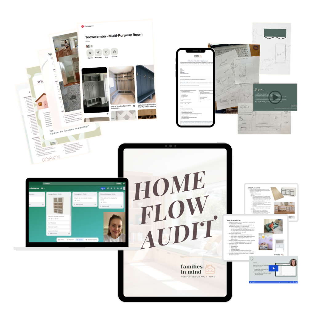 A 60-minute virtual consult to workshop any area of your home – from bedrooms and homework nooks to hallways, bathrooms, or shared living spaces – with practical, budget-friendly changes that boost functionality, wellbeing, and development.