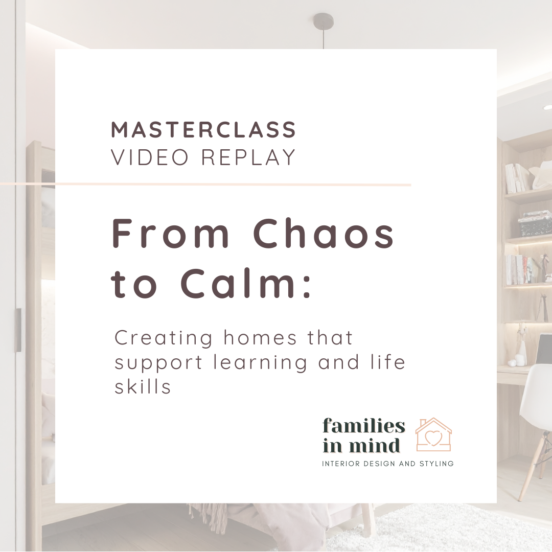 A practical 90-minute online masterclass for parents of kids aged 5–12 who want calmer daily routines and spaces that set their children up for focus, confidence, and independence as they grow.
